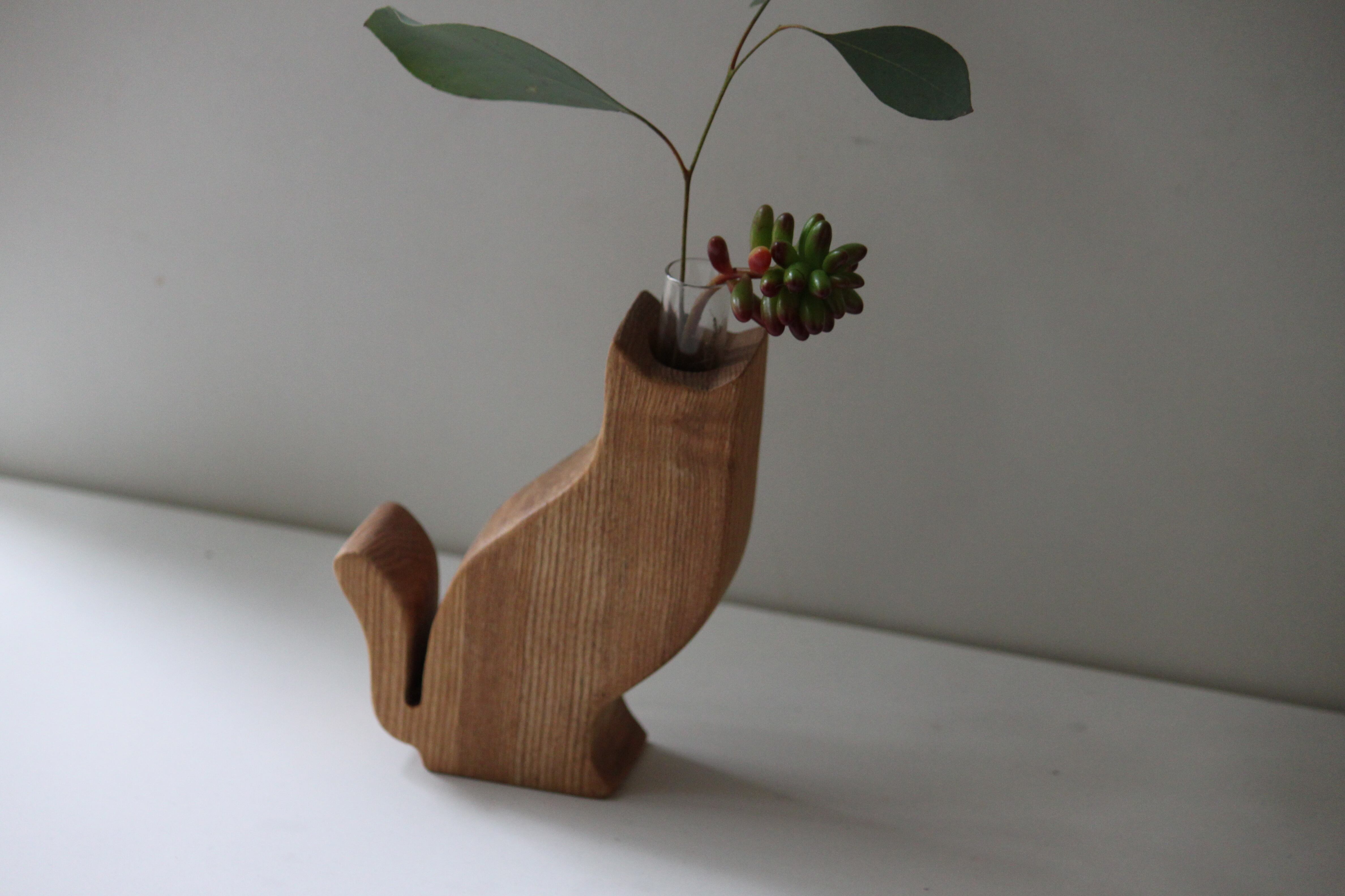 木の猫花瓶